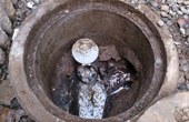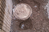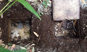 2.周辺を掘り、古くなった枡を壊して、枡を取り除きます。